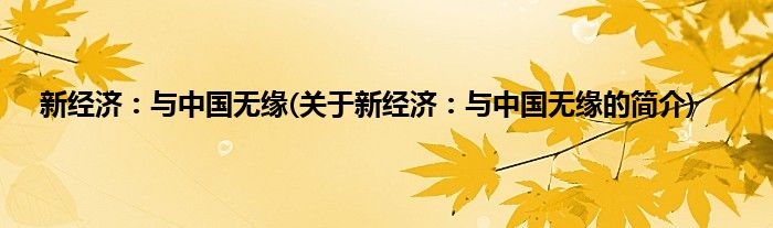 本文关于新经济:与中国无缘的简介就讲解完毕,希望对大家有所帮助。