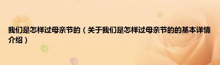 本文关于我们是怎样过母亲节的的基本详情介绍就讲解完毕,希望对大家有所帮助。