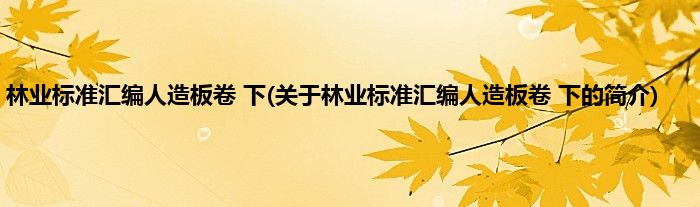 本文关于林业标准汇编人造板卷 下的简介就讲解完毕,希望对大家有所帮助。
