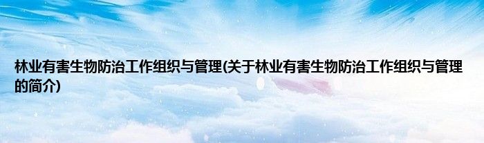 大家好,林业有害生物防治工作组织与管理,关于林业有害生物防治工作组织与管理的简介很多人还不知道,现在让我们一起来看看吧!