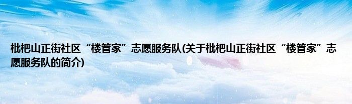 本文关于枇杷山正街社区“楼管家”志愿服务队的简介就讲解完毕,希望对大家有所帮助。
