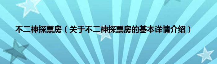 不二神探票房(关于不二神探票房的基本详情介绍)