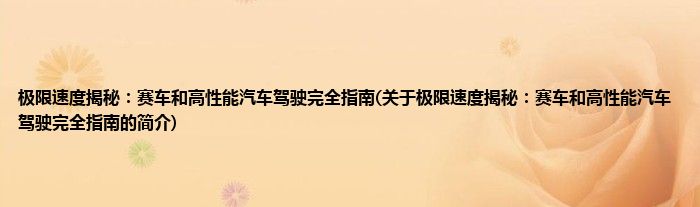 本文关于极限速度揭秘:赛车和高性能汽车驾驶完全指南的简介就讲解完毕,希望对大家有所帮助。