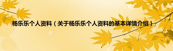 本文关于杨乐乐个人资料的基本详情介绍就讲解完毕,希望对大家有所帮助。