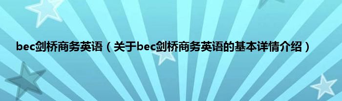 本文关于bec剑桥商务英语的基本详情介绍就讲解完毕,希望对大家有所帮助。
