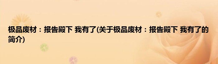 本文关于极品废材:报告殿下,我有了的简介就讲解完毕,希望对大家有所帮助。