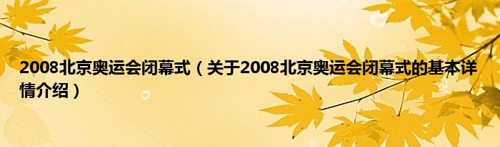 本文关于2008北京奥运会闭幕式的基本详情介绍就讲解完毕,希望对大家有所帮助。