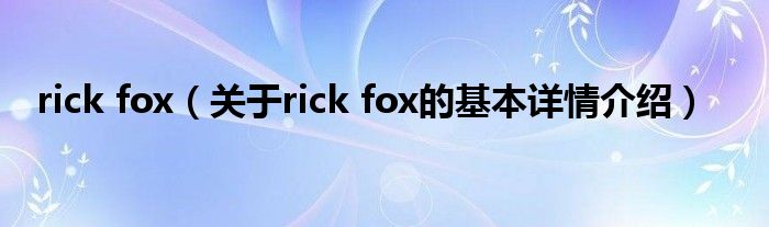 本文关于rick fox的基本详情介绍就讲解完毕,希望对大家有所帮助。