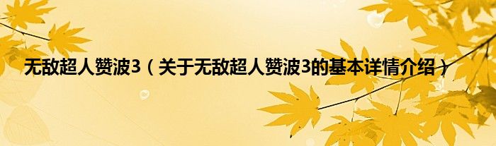 本文关于无敌超人赞波3的基本详情介绍就讲解完毕,希望对大家有所帮助。