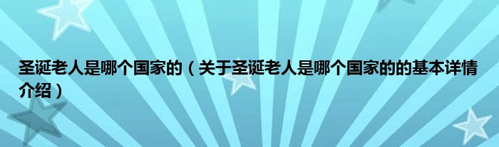 本文关于圣诞老人是哪个国家的的基本详情介绍就讲解完毕,希望对大家有所帮助。