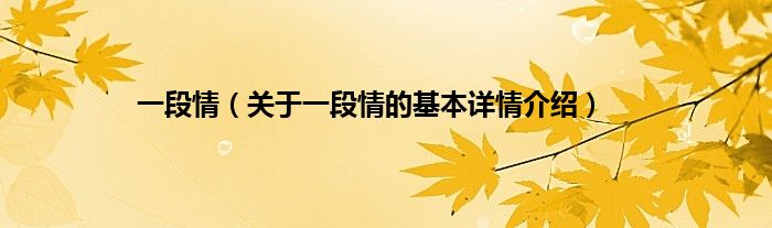 本文关于一段情的基本详情介绍就讲解完毕,希望对大家有所帮助。