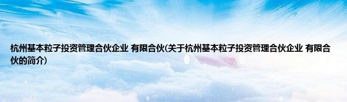 本文关于杭州基本粒子投资管理合伙企业 有限合伙的简介就讲解完毕,希望对大家有所帮助。