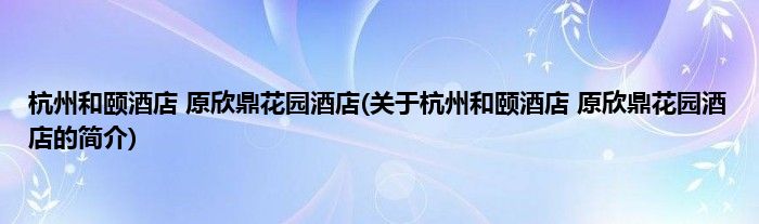 本文关于杭州和颐酒店 原欣鼎花园酒店的简介就讲解完毕,希望对大家有所帮助。