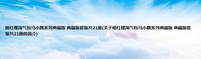 本文关于杨红樱淘气包马小跳系列典藏版 典藏版套装共21册的简介就讲解完毕,希望对大家有所帮助。
