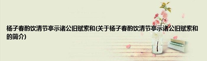 本文关于杨子春酌饮清节亭示诸公旧赋索和的简介就讲解完毕,希望对大家有所帮助。