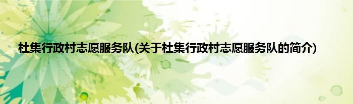 本文关于杜集行政村志愿服务队的简介就讲解完毕,希望对大家有所帮助。