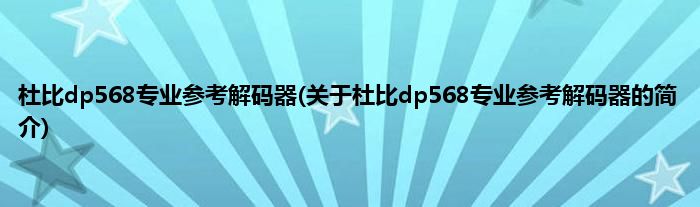 大家好,杜比dp568专业参考解码器,关于杜比dp568专业参考解码器的简介很多人还不知道,现在让我们一起来看看吧!