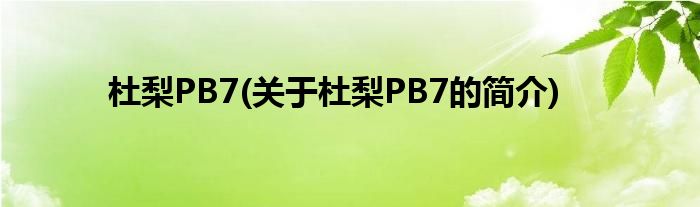 大家好,杜梨PB7,关于杜梨PB7的简介很多人还不知道,现在让我们一起来看看吧!