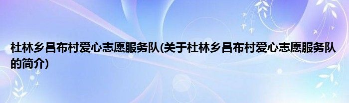 大家好,杜林乡吕布村爱心志愿服务队,关于杜林乡吕布村爱心志愿服务队的简介很多人还不知道,现在让我们一起来看看吧!