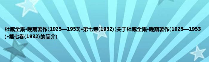 本文关于杜威全集·晚期著作(1925—1953)·第七卷(1932)的简介就讲解完毕,希望对大家有所帮助。