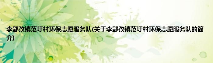 本文关于李郢孜镇范圩村环保志愿服务队的简介就讲解完毕,希望对大家有所帮助。