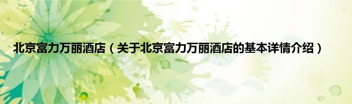 本文关于北京富力万丽酒店的基本详情介绍就讲解完毕,希望对大家有所帮助。