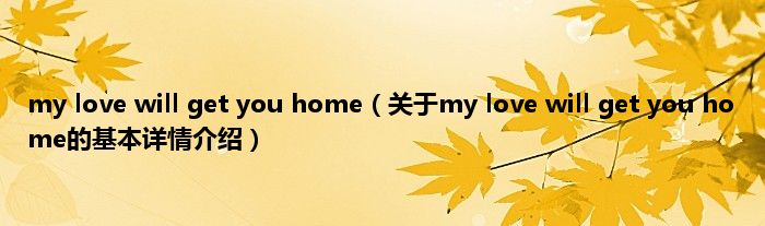 本文关于my love will get you home的基本详情介绍就讲解完毕,希望对大家有所帮助。