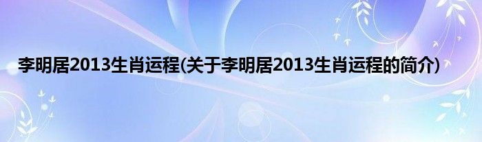 大家好,李明居2013生肖运程,关于李明居2013生肖运程的简介很多人还不知道,现在让我们一起来看看吧!
