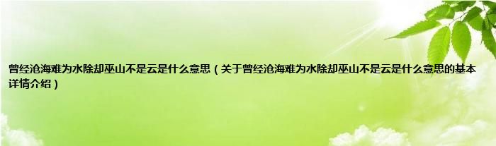 本文关于曾经沧海难为水除却巫山不是云是什么意思的基本详情介绍就讲解完毕,希望对大家有所帮助。