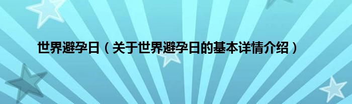 本文关于世界避孕日的基本详情介绍就讲解完毕,希望对大家有所帮助。