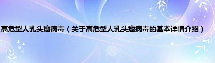 本文关于高危型人乳头瘤病毒的基本详情介绍就讲解完毕,希望对大家有所帮助。