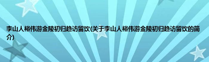 本文关于李山人裕伟游金陵初归趋访留饮的简介就讲解完毕,希望对大家有所帮助。