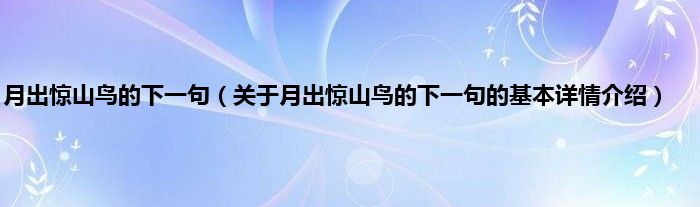 本文关于月出惊山鸟的下一句的基本详情介绍就讲解完毕,希望对大家有所帮助。