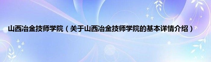本文关于山西冶金技师学院的基本详情介绍就讲解完毕,希望对大家有所帮助。