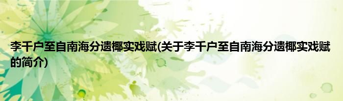 本文关于李千户至自南海分遗椰实戏赋的简介就讲解完毕,希望对大家有所帮助。