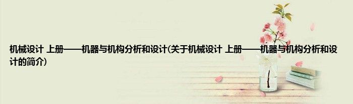 大家好,机械设计 上册——机器与机构分析和设计,关于机械设计 上册——机器与机构分析和设计的简介很多人还不知道,现在让我们一起来看看吧!