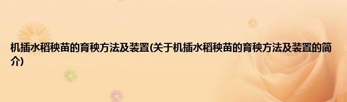 机插水稻秧苗的育秧方法及装置(关于机插水稻秧苗的育秧方法及装置的简介)