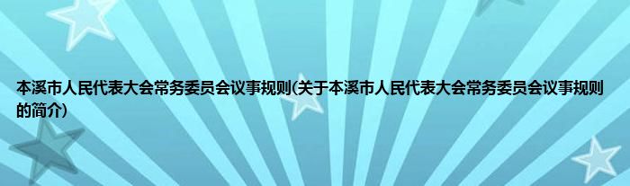 本溪市人民代表大会常务委员会议事规则(关于本溪市人民代表大会常务委员会议事规则的简介)