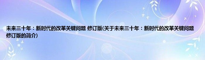 1、 《未来三十年:新时代的改革关键问题(修订版)》是由2018年9月中信出版社出版的图书。