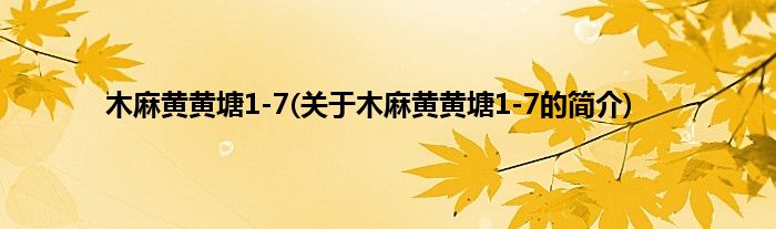 本文关于木麻黄黄塘1-7的简介就讲解完毕,希望对大家有所帮助。