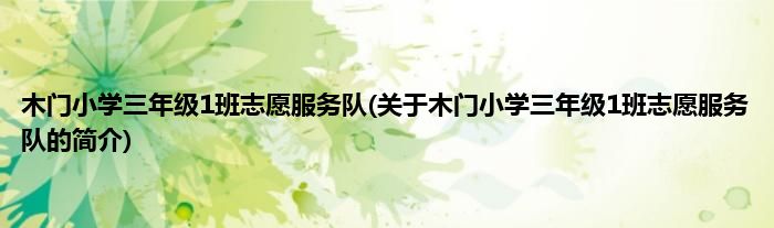 大家好,木门小学三年级1班志愿服务队,关于木门小学三年级1班志愿服务队的简介很多人还不知道,现在让我们一起来看看吧!