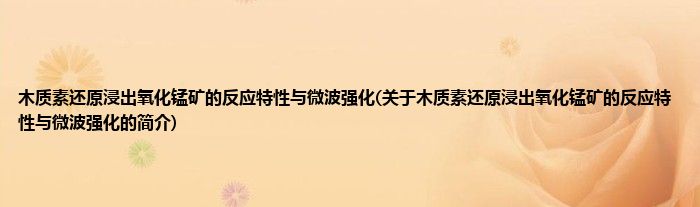 本文关于木质素还原浸出氧化锰矿的反应特性与微波强化的简介就讲解完毕,希望对大家有所帮助。