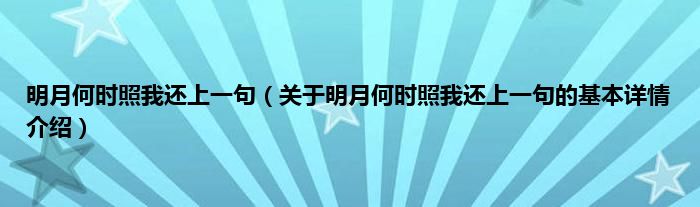 明月何时照我还上一句(关于明月何时照我还上一句的基本详情介绍)