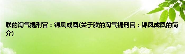 本文关于朕的淘气提刑官:锦凤成凰的简介就讲解完毕,希望对大家有所帮助。