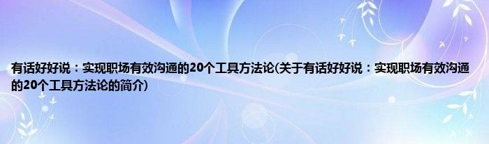 本文关于有话好好说:实现职场有效沟通的20个工具方法论的简介就讲解完毕,希望对大家有所帮助。