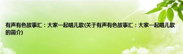 本文关于有声有色故事汇:大家一起唱儿歌的简介就讲解完毕,希望对大家有所帮助。