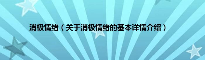本文关于消极情绪的基本详情介绍就讲解完毕,希望对大家有所帮助。