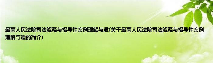 本文关于最高人民法院司法解释与指导性案例理解与适的简介就讲解完毕,希望对大家有所帮助。