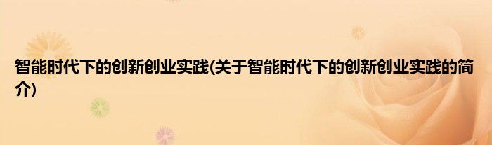 大家好,智能时代下的创新创业实践,关于智能时代下的创新创业实践的简介很多人还不知道,现在让我们一起来看看吧!