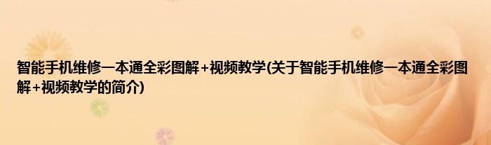 大家好,智能手机维修一本通全彩图解+视频教学,关于智能手机维修一本通全彩图解+视频教学的简介很多人还不知道,现在让我们一起来看看吧!